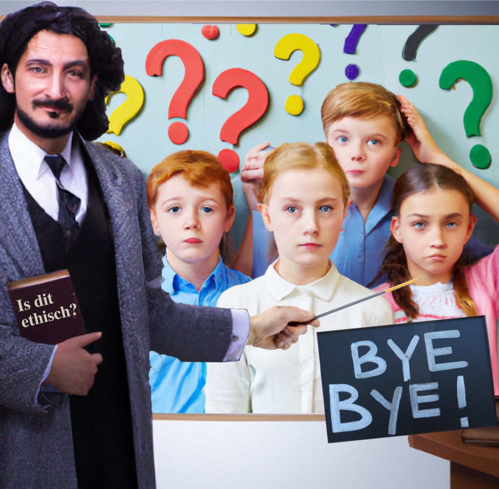 ‘Nou, dan ga je nadenken hoe we dingen beter en eerlijker kunnen maken. Bijvoorbeeld hoe we de oceaan schoon kunnen houden, of hoe we allemaal fijn kunnen leven.’